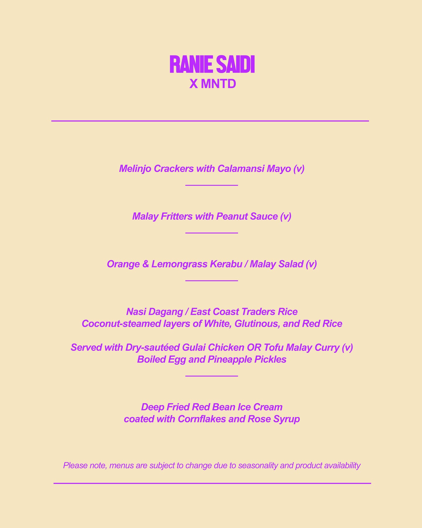 What: A Malay feast cooked from the heart by Ranie Saidi